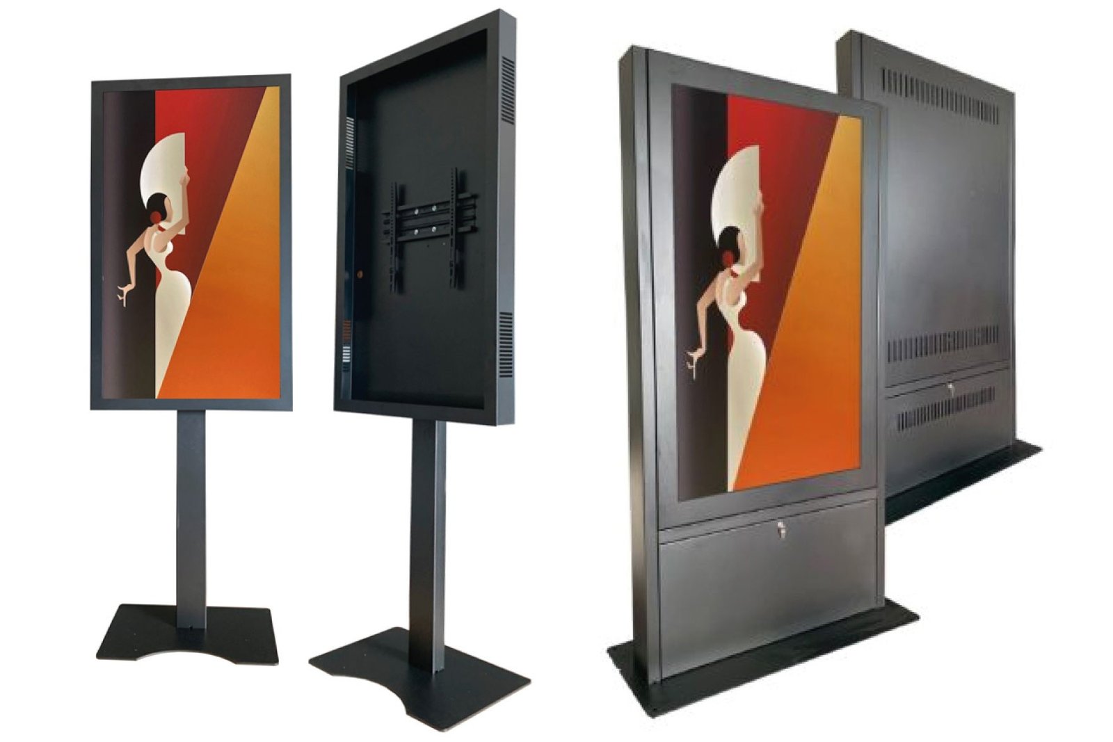 Compact and versatile roll-up stands perfect for exhibitions and promotional displays.
